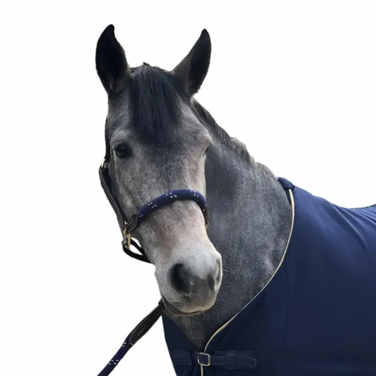 - Licol cheval en cuir avec dessus de nez en corde épaisse
