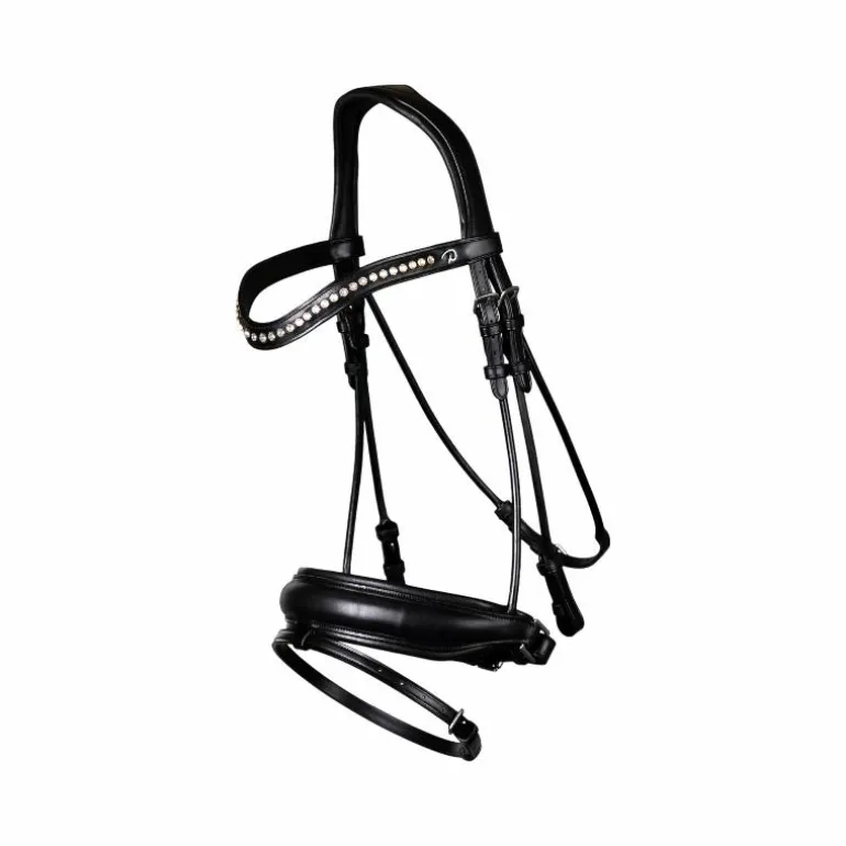 • Bridon avec muserolle large en cuir mat