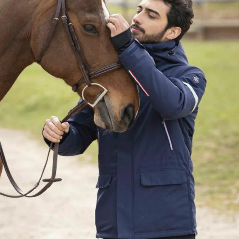 - Un système de serrage en bas de manche par bandes auto-agrippantes, bande de sécurité réfléchissante placée dans une poche sur le bras gauche, ouvertures fentes placées de chaque côté, poche intérieure zippée, système de serrage au niveau de la taille à l’intérieur et une coupe droite.