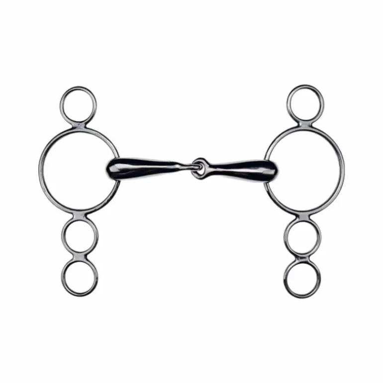 Les cavaliers plus expérimentés peuvent aussi utiliser quatre rênes cela permet plus de possibilités en termes de réglage de la puissance du mors. - Épaisseur du canon : 21mm