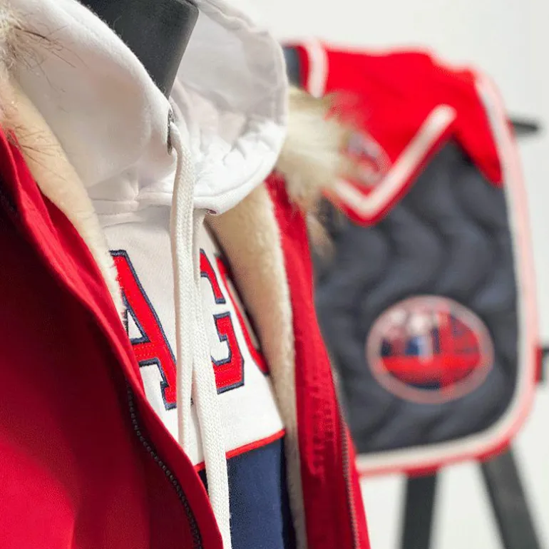- Logo Hagg blanc, rouge et marine sur la poitrine