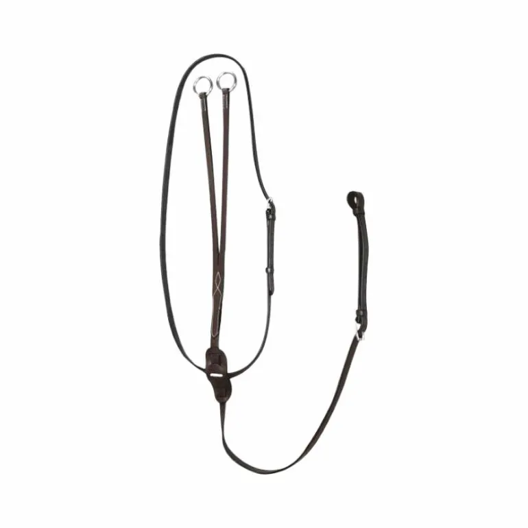 • La martingale à anneaux n’a pas pour but de faire baisser la tête du cheval, mais de l’empêcher de donner des coups de tête.