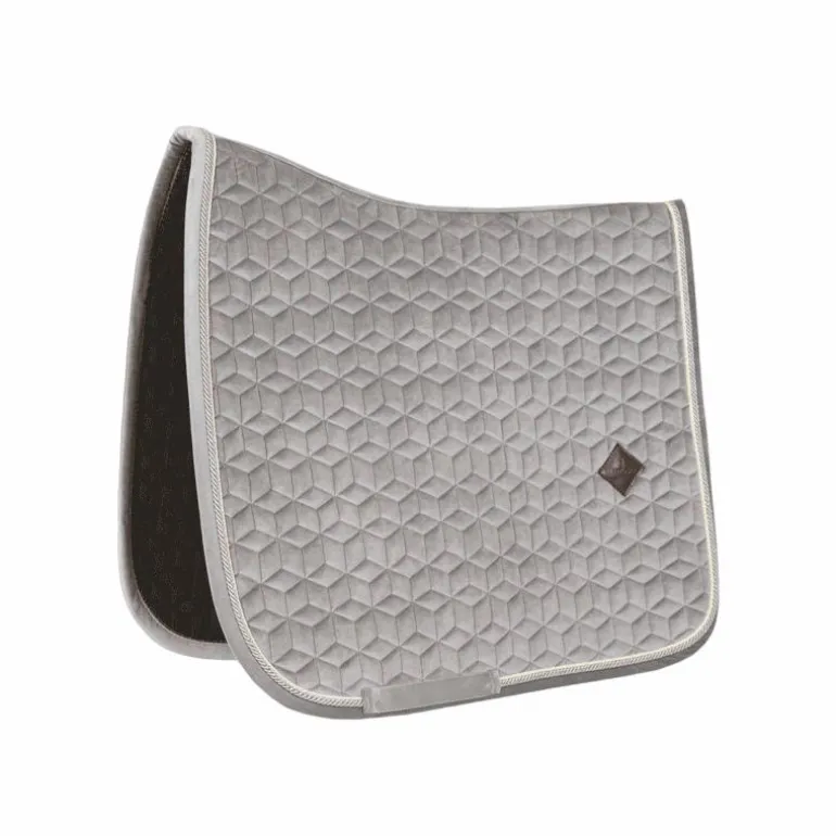 - Le tapis de dressage Velvet très élégant avec son effet velours et son passepoil à double torsion.