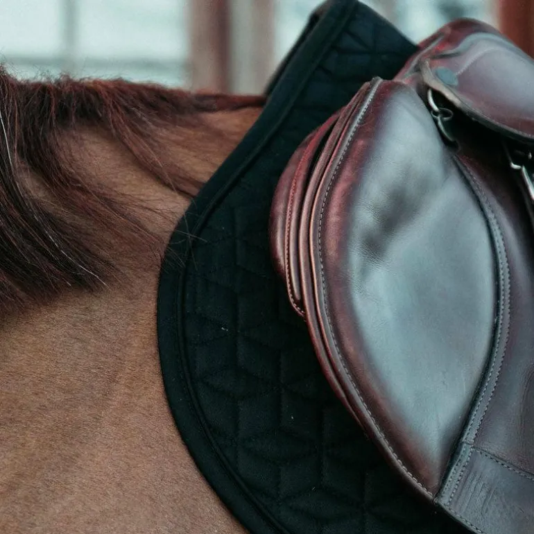 - La doublure du tapis de selle est un mélange coton-polyester qui évacue l’humidité.