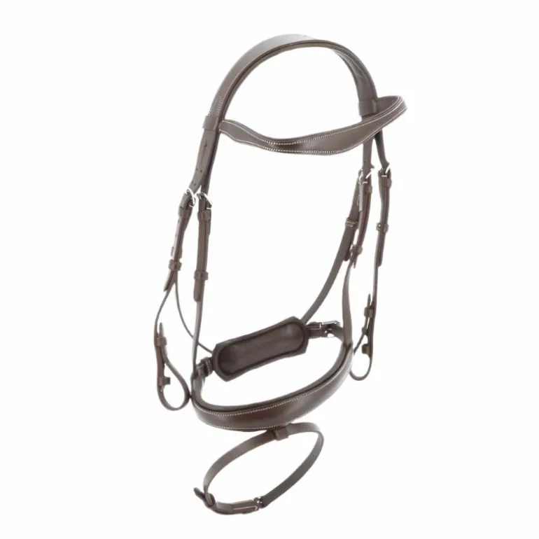 - Bridon en cuir de buffle avec têtière, frontal et muserolle doublés cuir vachette, crochets sur les montants de mors