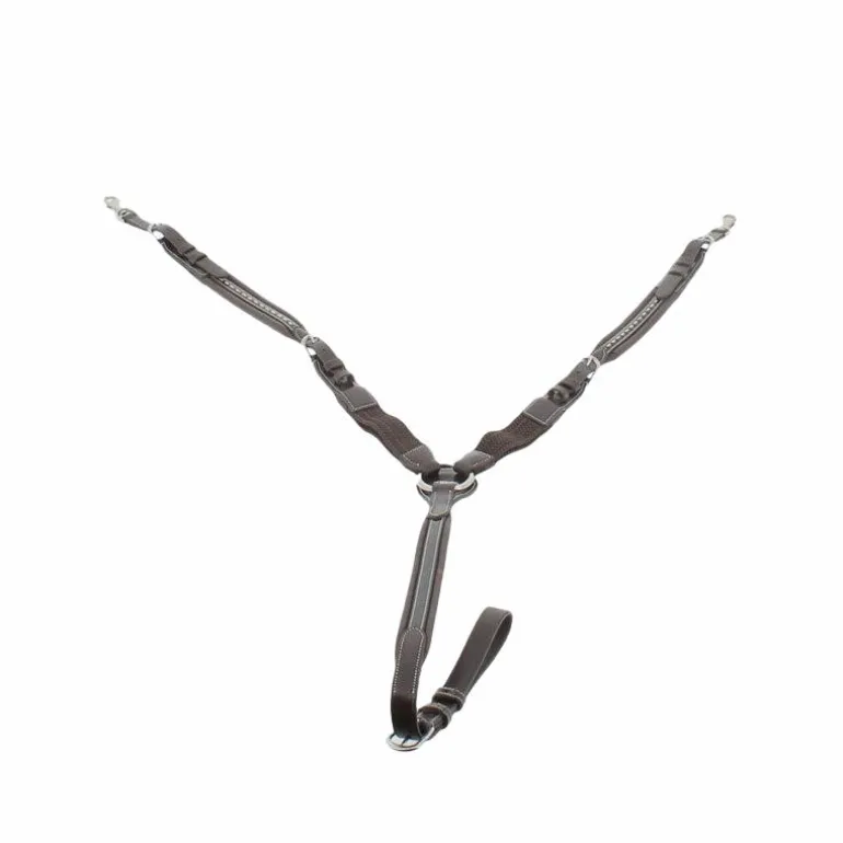 • Le réglage de la partie collier de chasse peut être optimal grâce, notamment, à l’élastique présent au niveau du garrot qui permet de réduire l’espace entre le poitrail et l’attache de la sangle et offrant également un ajustement idéal à votre cheval