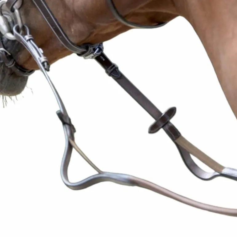 - Rênes de cheval en caoutchouc et en cuir vachette avec élastique intégré à l’extrémité vers la bouche du cheval