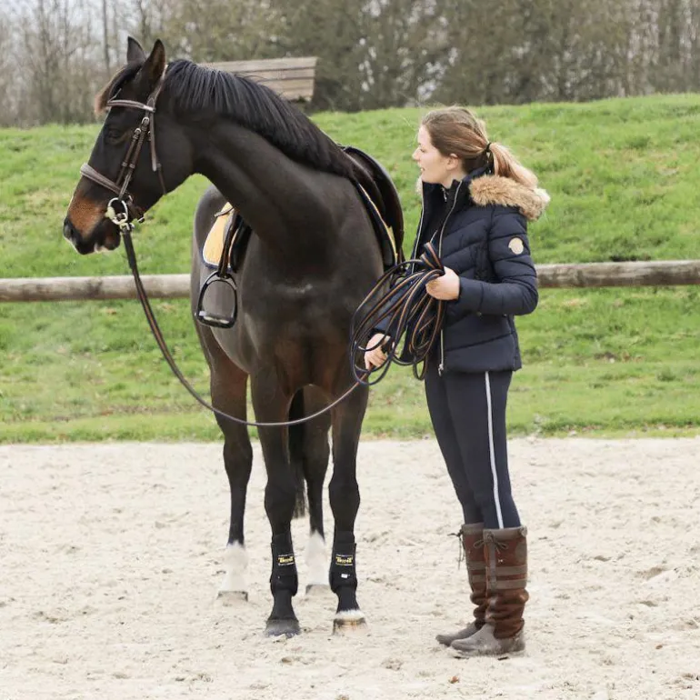 - La coque rigide thermoformée assure un parfait ajustage de la protection sur le membre du cheval