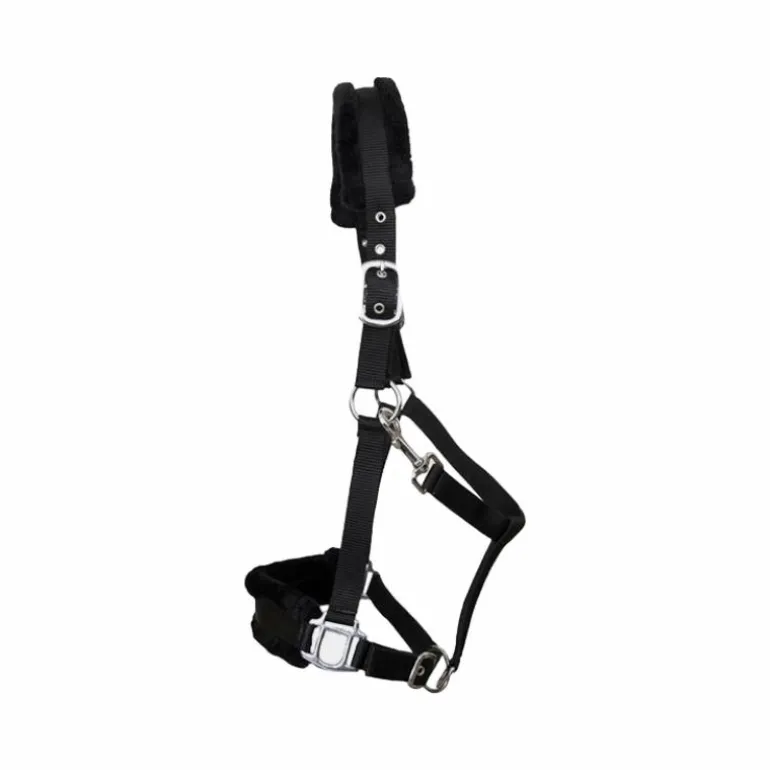 - Licol en nylon avec doublure mouton synthétique sur la têtière et la muserolle.