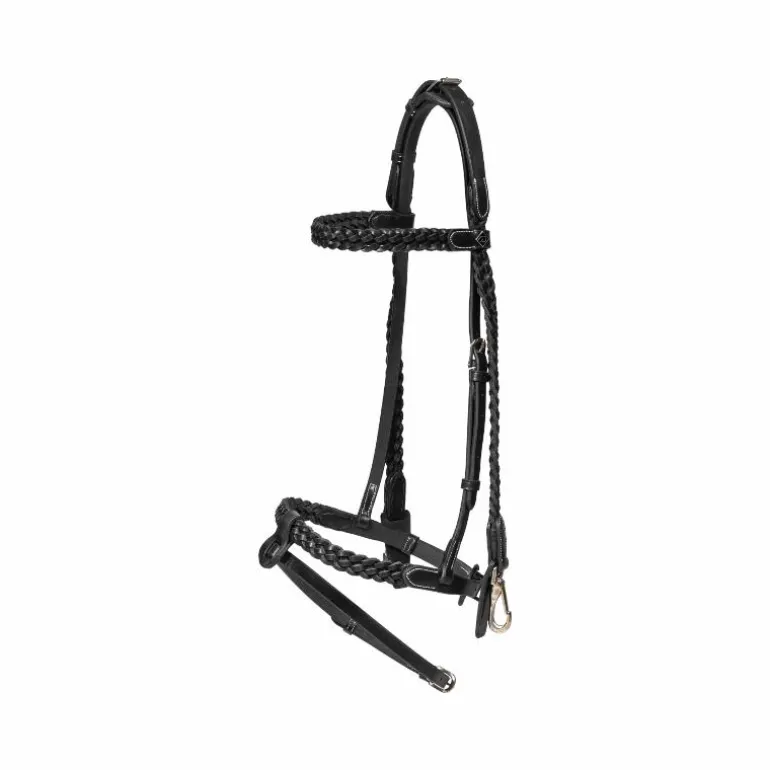 • Détails en cuir tressé sur la muserolle, le frontal et les montants