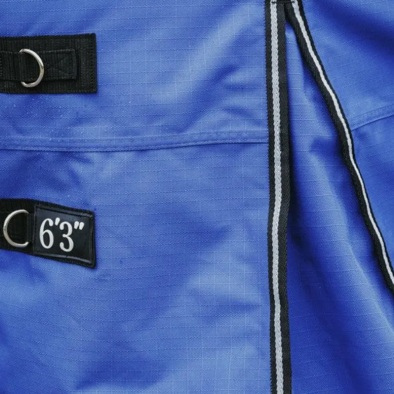 • Fermeture de poitrail par fixation rapide avec renfort par bandes auto-agrippantes et indication de la taille sur le patch en caoutchouc