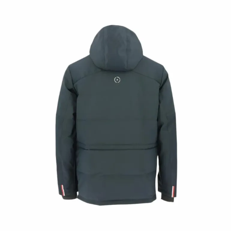 - Caractéristiques : Les tissus extérieurs sont laminés : imperméable 5000 Schmerber / respirant 5000 MVTR. Les fermetures frontale zippée et fermeture frontale double sens. Capuche amovible, capuche ajustable, poches main fermées par rabats pressionnés, poches poitrines zippées, manchons en tissu élastique.
