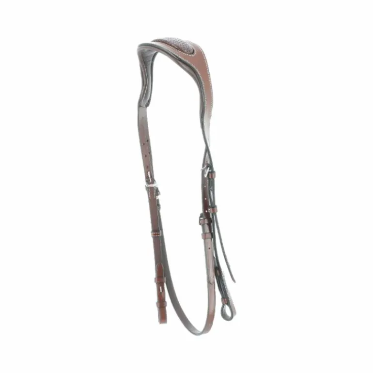 - Têtière en cuir de buffle, découpe large sur le dessus, doublée cuir vachette matelassé.