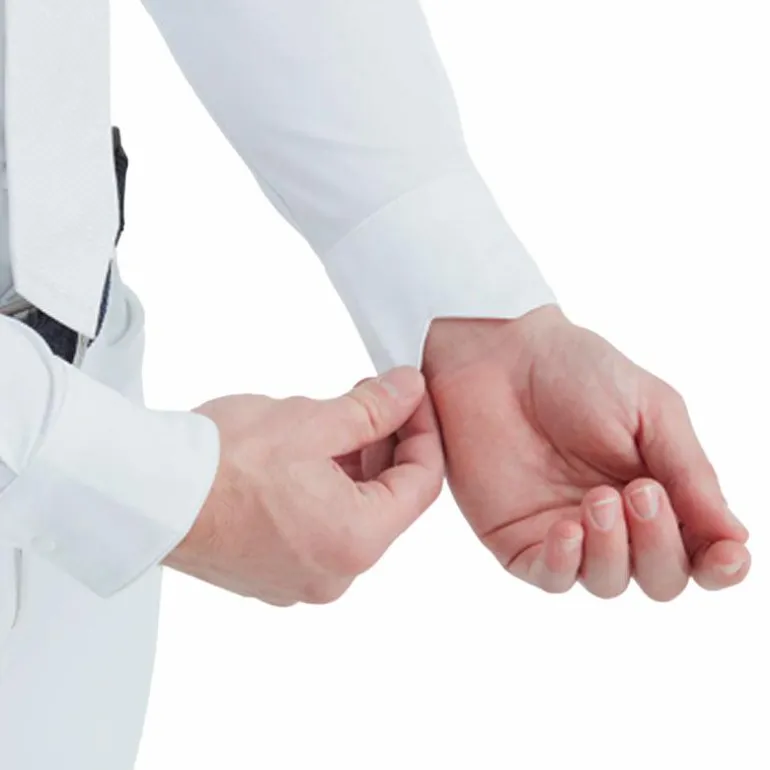 • La forme des bas de manche et du col a été étudiée pour libérer les gestes du cavalier en concours