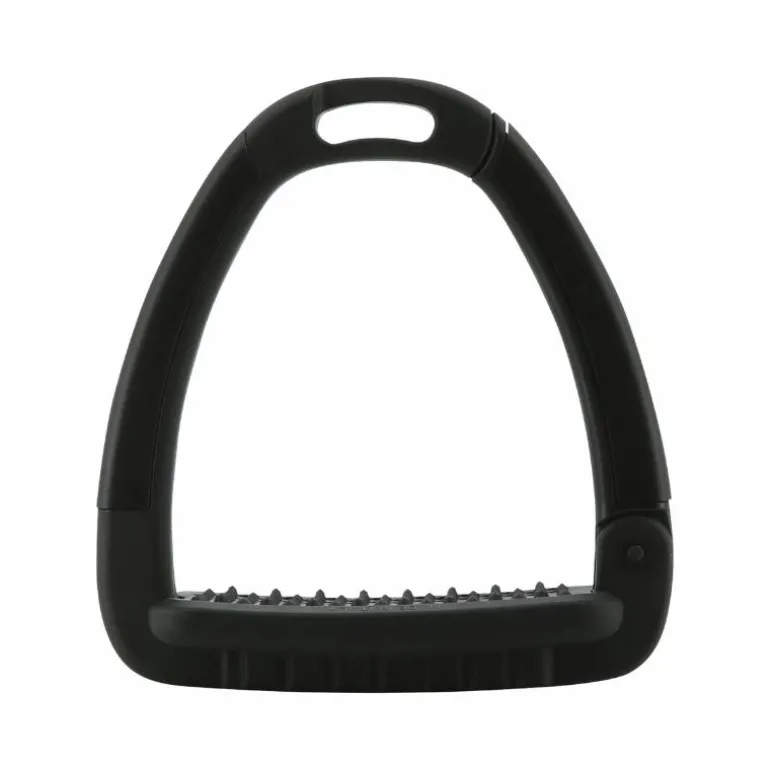 • Semelle de l’étrier anatomique avec une inclinaison à 5° aidant à maintenir le talon du pied vers le bas