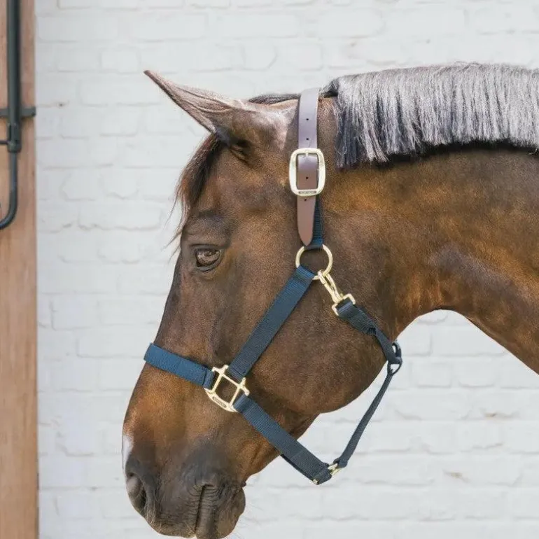 • Pour des raisons de sécurité, si un cheval venait à paniquer, le licol céderait à l’endroit où vous l’attachez sur le côté de la tête, des têtières individuelles sont disponible à la vente pour venir en remplacement de celle qui serait cassée