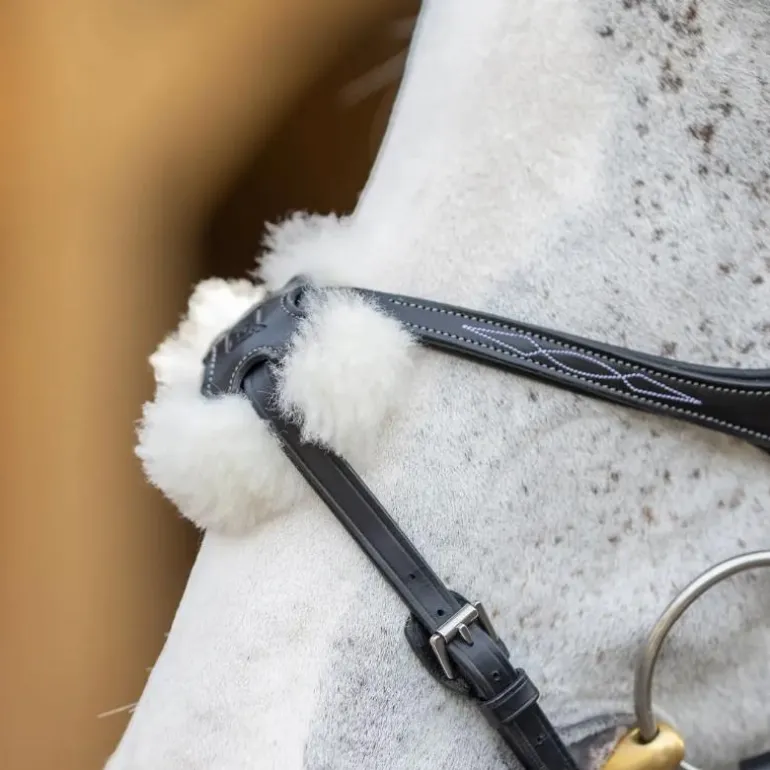 • Rembourrage interchangeable sur la muserolle (laine mérinos ou coussinet en cuir souple)