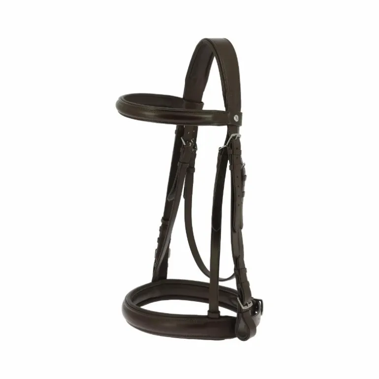 • Têtière, frontal et muserolle doublés en cuir de vachette