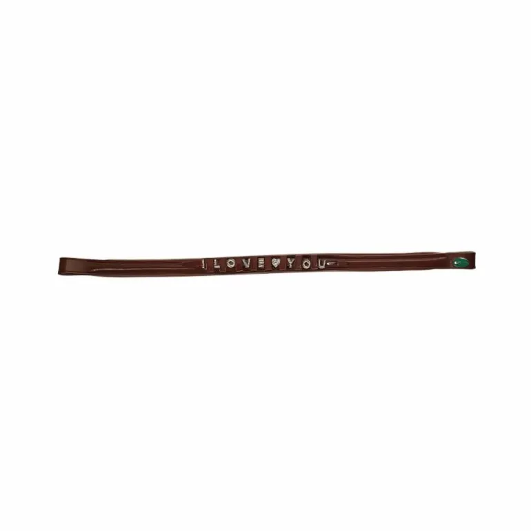 • Rehaussé d’une lanière en cuir amovible permettant la personnalisation du frontal avec des lettres en métal décoré de strass.
