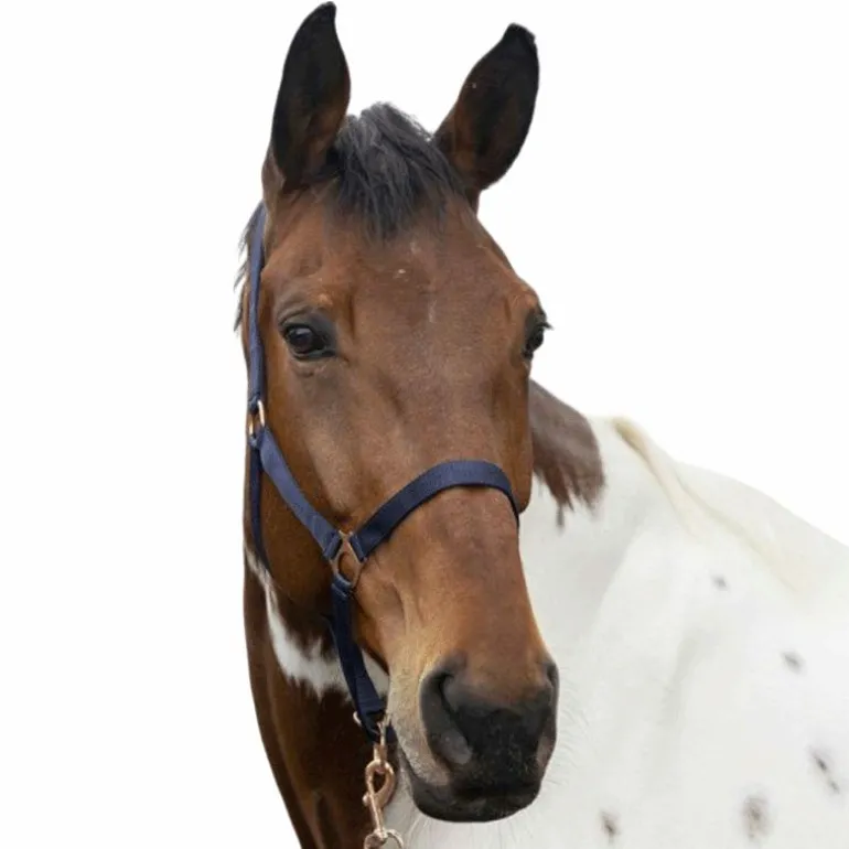 - En nylon double épaisseur avec muserolle et têtière réglables et ouverture rapide de la sous gorge par mousqueton.