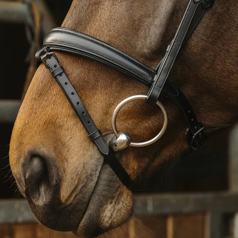 • Frontal et muserolle doublés en cuir de vachette