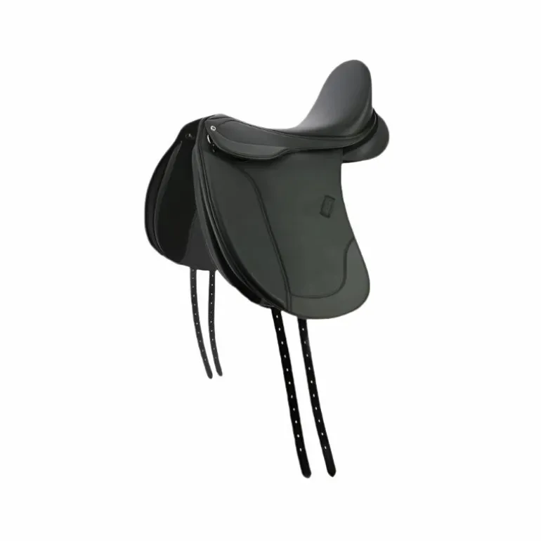 - Selle de dressage en matériau haute résistance et antidérapant (cuir synthétique, Rexine, EVA et tissu synthétique laminé).