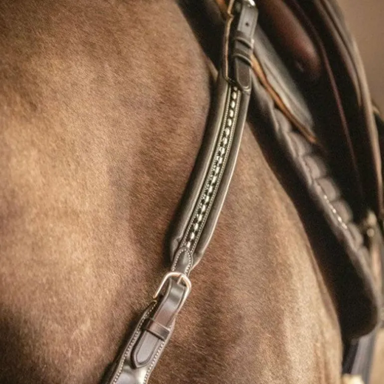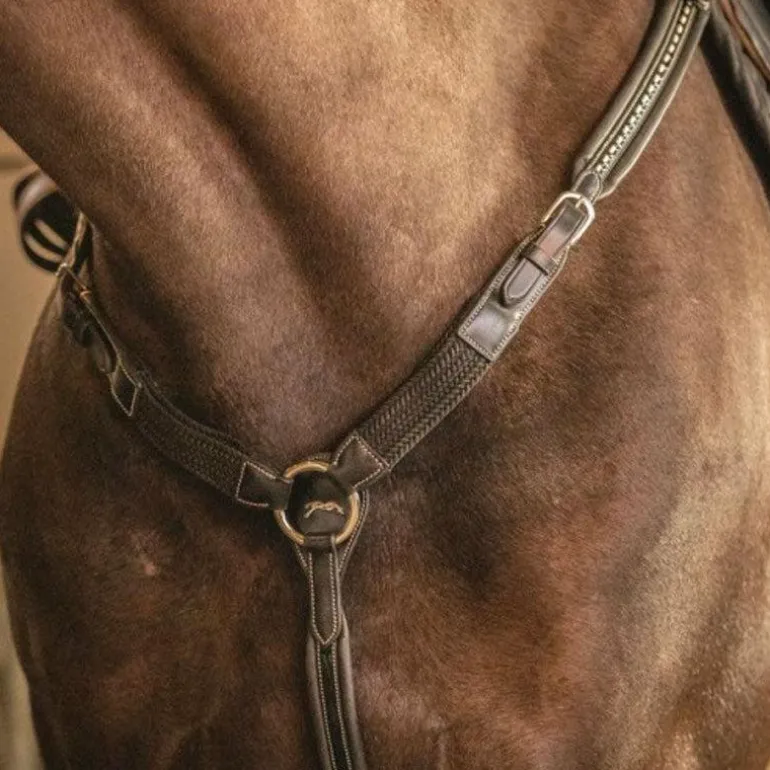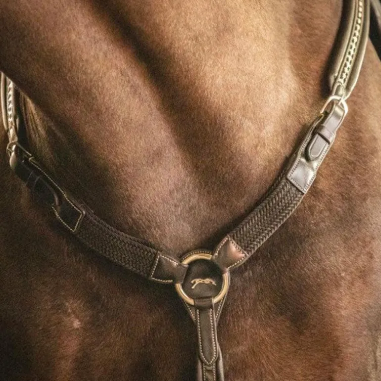• Le réglage de la partie collier de chasse peut être optimal grâce, notamment, à l’élastique présent au niveau du garrot qui permet de réduire l’espace entre le poitrail et l’attache de la sangle et offrant également un ajustement idéal à votre cheval