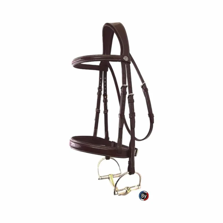 - Frontal et muserolle matelassés, avec léger bombé carré et surpiqûre décorative