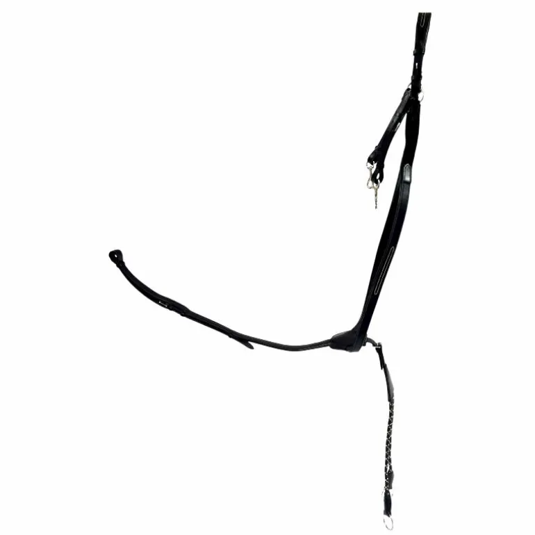 • Le collier de chasse empêche la selle de glisser vers l’arrière. Il est donc souvent utilisé pour le saut d’obstacles, le concours complet ou pour des chevaux très ronds. Ils sont également souvent utilisés pour y fixer une martingale. La martingale empêche les chevaux de lever la tête trop haut. Lorsque la martingale est attachée au harnais, elle a ainsi une double fonction