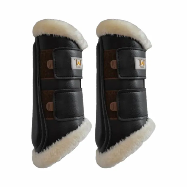 - Guêtres de dressage pour postérieurs en cuir et mouton synthétiques.
